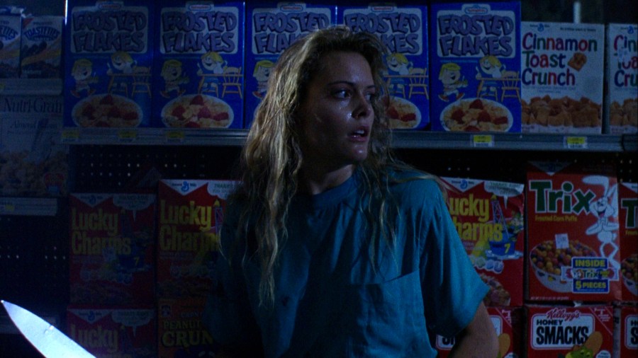 This film is terrific, with the darkened and isolated location of the supermarket being perfect for a killer to be running rampant within. The deaths are gory, innovative (my favourite being the head sawn in two by a meat slicer and then put back together but not aligned. One of the best special effects I’ve ever seen) and carried out with real panache.