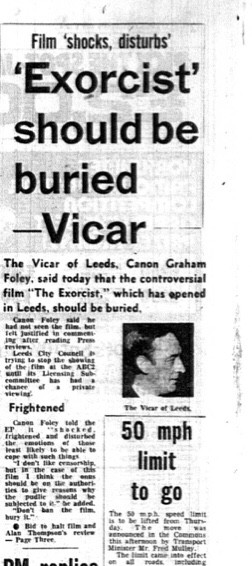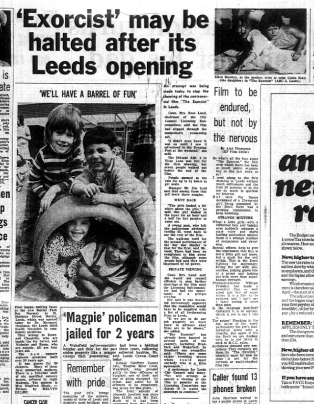 One such film was, of course, The Exorcist. The film being released in Leeds (in May 1974) didn’t go unnoticed by the local bureaucratic busybodies as they hadn’t even seen the film yet. What happened gives a glimpse into the censorship process that held more sway in the 70s when a film was to be released.