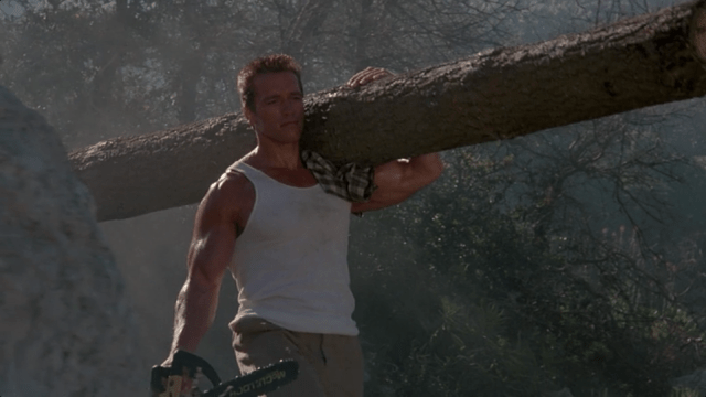 It’s also nice to see the full film at last. In the ’80s the film was cut by the BBFC with most of the garden shed scene being censored. That meant that we didn’t get to see the glorious moment when Arnie throws a circular garden blade at someone’s head or when he uses a machete to cut someone’s arm off. This sequence feels like something from a slasher movie so it’s no surprise that the BBFC got its knickers in a twist. It was worth the wait.