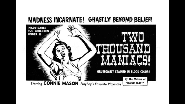 I’ll always have a soft spot for Two Thousand Maniacs! as it was the first Herschell Gordon Lewis film I got to see after reading about him in various cult cinema books. When I got to London to study film at university, I found this movie on video in Forbidden Planet. I wasn’t disappointed.