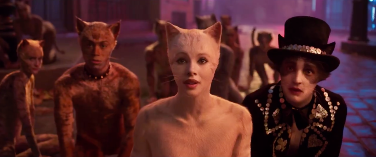 Very quickly I could tell that Cats is a CGI shitfest. Watching actors and dancers slithering around in ridiculous cat outfits and make-up is one thing but you can tell that they are doing all of this in a green screen studio and then they are transferred onto CGI locations. It looks the ultimate in artifice without even a smidgen of authenticity. Everybody also looks like they’ve been through some kind of smoothing filter like Facetune which has been turned up to 11. It’s a vile, grotesque viewing experience and actually made me feel quite queasy at times.
