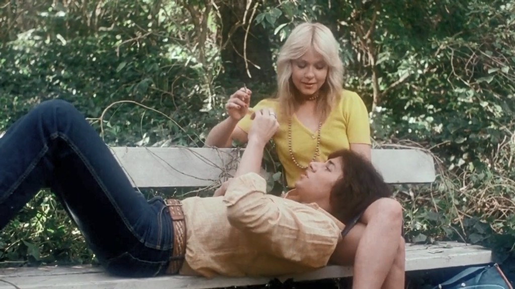 I loved some of the frankly absurdist dialogue. An example- Linnea Quigley’s character is with her boyfriend in the woods making out (we’ve seen them enjoying a joint in an earlier scene, so we just know they’re going to be slaughtered) when he announces that he has to pee. As he walks away to a nearby bush, she says to him, ‘I’m so jealous you’re able to just pee anywhere’, to which he replies, ‘Yeah! The whole world’s my toilet!’ Which, I guess, it is!