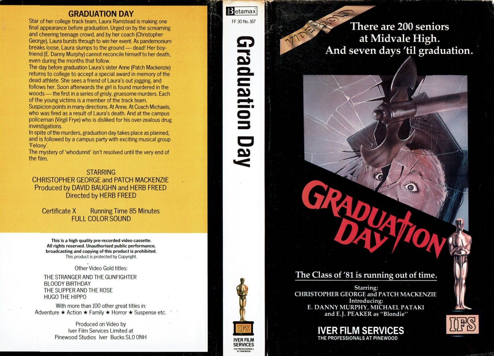 I still can’t believe that I hadn’t seen Graduation Day until yesterday. I *think* I was getting it mixed up with another school-based slasher movie, Final Exam which I’ve (unfortunately) seen before.