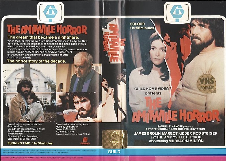 One of the first video sleeves I ever saw was for The Amityville Horror which just so happened to be on one of my favourite video labels, Guild Home Video (the people who have ever seen the opening ident for Guild will know why I love it so much) in one of the first video shops that opened in my area. The eye-popping visuals were so intoxicating as it looked like Margot Kidder was going to be attacked with an axe. After my family rented the movie, I then tracked down Jay Anson’s paperback that the movie is based on.