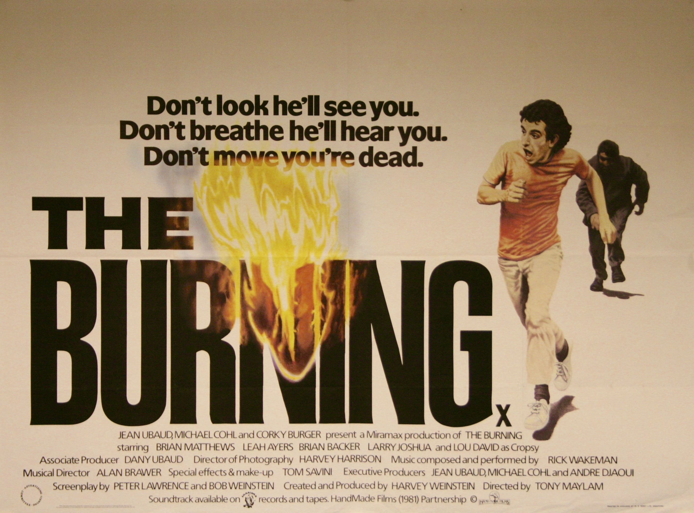 The Burning is a treat to behold. Great cinematography and directorial touches (check out Glazer’s death and the killer’s/shear’s point of view shot) and a great music score by none other than prog rock’s very own Grand Wizard Rick Wakeman (apparently on his ’81 tour he was playing tracks from The Burning soundtrack. Whilst possibly wearing a cape). The teen characters are quite likeable too which is a real rarity for the slasher genre.