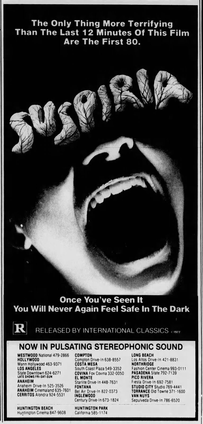 Suzy Bannion has travelled from America to a very prestigious dance academy in Germany. Bizarre events happen right from the get-go, and Suzy is sure that there is more than meets the eye at the academy.
