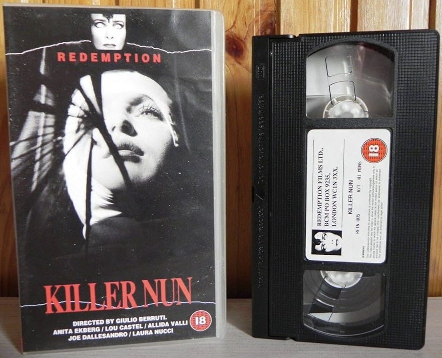 Killer Nun was banned and placed on the Video Nasties list but then removed. It was then re-released on the infamous 90’s video label Redemption (with cuts). It’s now been passed uncut here in the UK and so it can be enjoyed in all of it uncensored, habit-flapping glory.