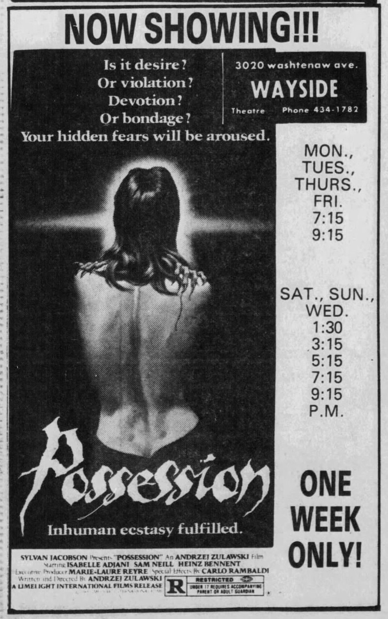 Possession is unhinged, neurotic, on the edge, over the edge and a complete and utter one-off. If ever a movie was on the verge of a nervous breakdown, it’s this.