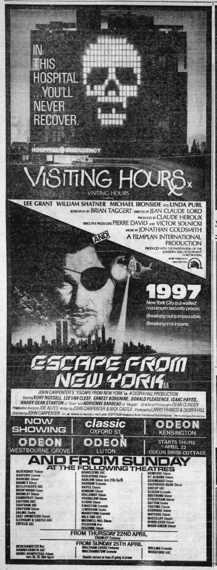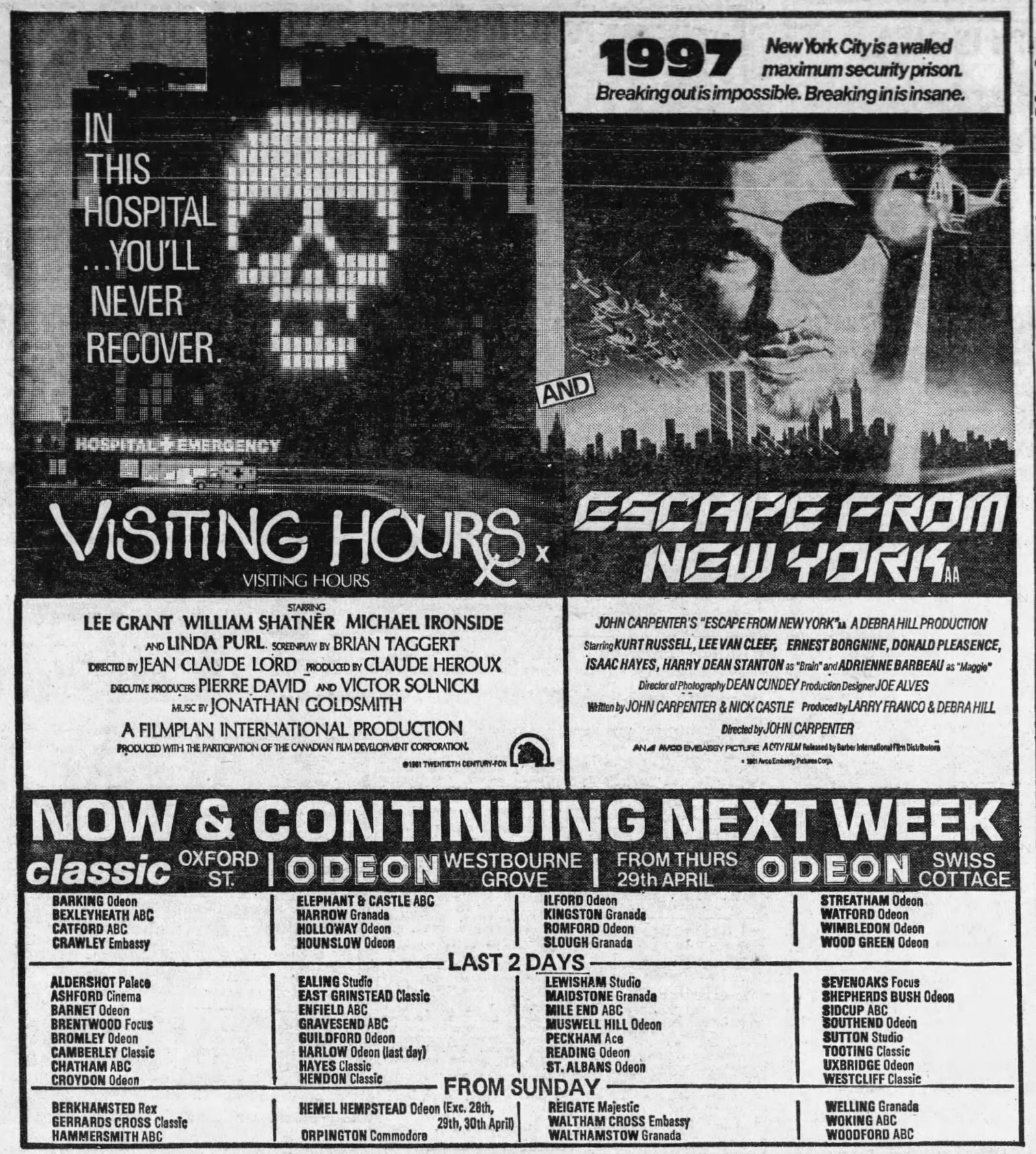 Fun fact- the film played theatrically in the UK as part of a double bill with Escape From New York.