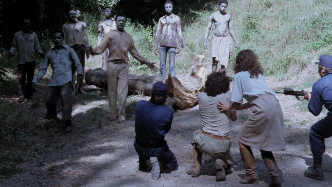 The influence here to Dawn of the Dead is loud and clear. For one, they use parts of Goblin’s iconic score for the soundtrack! But we also get zombie kids, soldiers, the characters learning that they have to ‘shoot ’em in the head’ to kill their carnivorous foes, the unravelling of society as a whole (which resembles politicians arguing with each other in lecture theatres with scattered paper around them to underline the theme of a lack of order)…In the case of Zombie Creeping Flesh we even get a zombie old age pensioner and more graphic and gratuitous female nudity than Romero’s masterpiece.