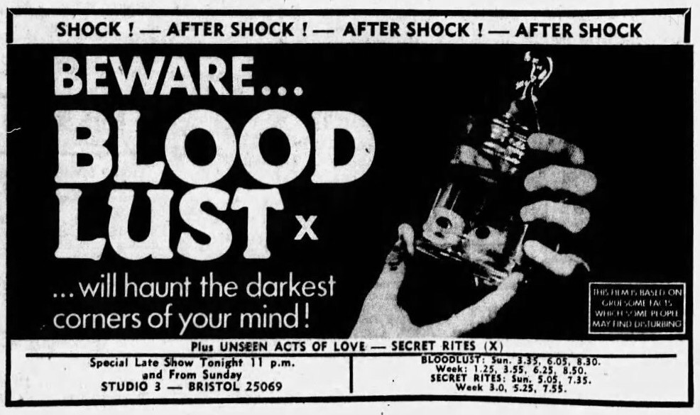 Blood Lust was cut by 3 and a half minutes for it’s original cinema release here in the UK and was then, of course, banned on video. The gore in the film is eerily realistic and the early abuse scene leaves nothing to the imagination. But it still shouldn’t have been banned or even cut. This is a beautiful piece of art that deserves to be seen by a wider audience.