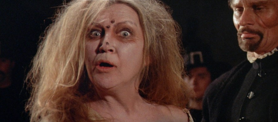 A woman who religious elders think is a witch, is examined and a needle inserted into her body and shown to not draw blood (a huge red flag apparently). She must be a witch/demon/devil woman (to quote Cliff Richard). She then looks straight into the camera and pulls a ‘possessed’ face that made me burst out laughing.