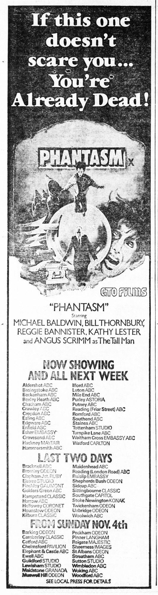 I first heard of Phantasm when its sequel came out. Barry Norman reviewed it and admitted that he hadn’t even heard of the first film. Neither had I.