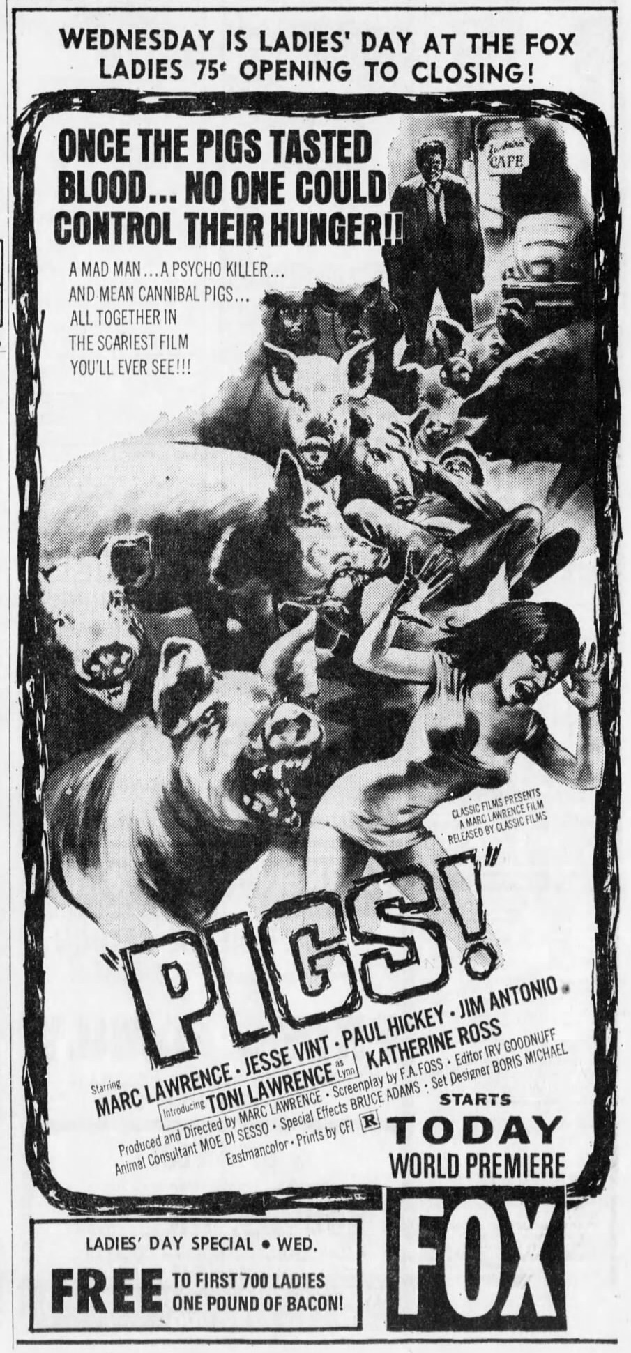 I read one review of Pigs that said it’s like Repulsion but without the arty pretensions. Which is very accurate actually.