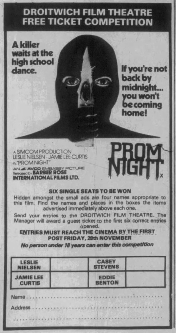 With Halloween being a major influence on this film there are also the atypical scenes of the female characters talking about, y’know, girls things- boys, hair, going to the prom etc etc. In fact, in the book Blood Money, it has been suggested that there were two types of advertising for this film- one that dwelt on the themes thought to be more appealing to a young female demographic (the disco music, the relationships and drama within the film) and ones that dwelt on what was thought to appeal to the guys- namely the tension, suspense and kills.