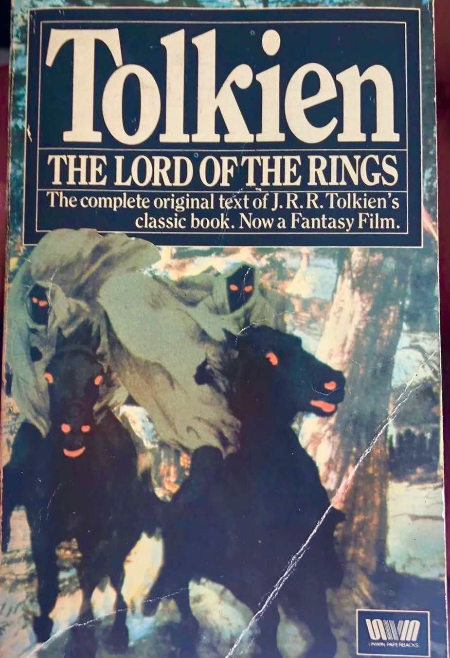 Firstly, knocking about at home we had a paperback of The Lord of the Rings resplendent with cloaked horsemen all with glowing red eyes.