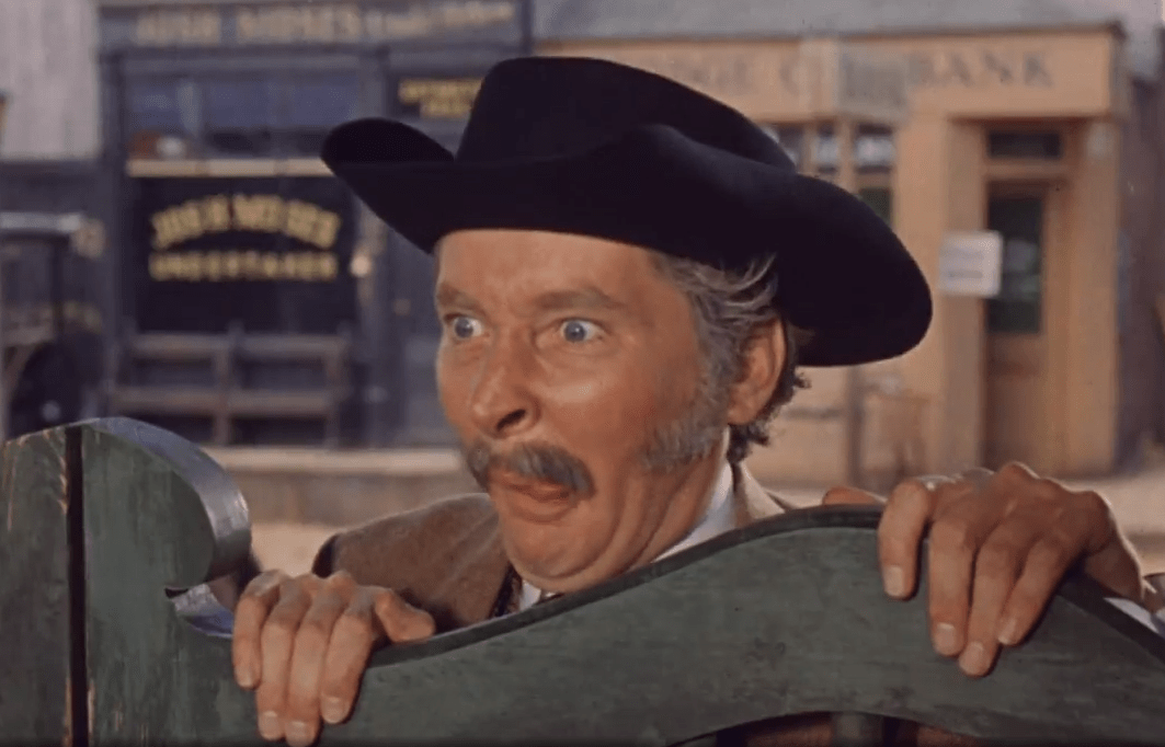 Johnny Finger (!) aka The Rumpo Kid rides into Stodge City and instantly causes chaos by killing three strangers. He also demands alcohol at the local saloon which shocks the tee-total mayor. He *then* kills the sheriff. Can a ‘sanitation engineer first-class’ (ie plumber) from Merry Old England solve this lawless situation?