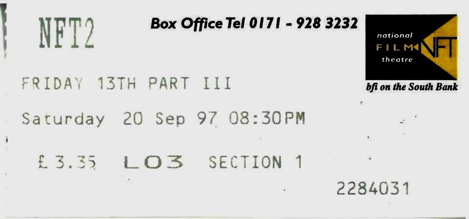 I was then lucky enough to see the film in 3D several times when it regularly played at the National Film Theatre when I was studying Film in London in the late 90’s. The NFT is the official cinema for the British Film Industry and is a cinema where you would be more likely to see a seven hour Icelandic arthouse epic than F13th Part 3. I remember the first screening in 3D that I saw, with it’s recap of the end of Part 2 (obviously in 2D), with some arthouse film lovers in the audience laughing at what they saw. And then the 3D kicked in. And it’s REALLY well done! The titles come out of the screen at you but then they come out even further until they’re pracically scratching your retinas. Everyone in that audience started screaming, cheering and applauding. From that moment on, everyone had a great time, even the French New Wave fans.