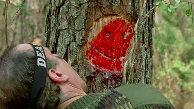 There’s also the fantastic scene in which very stupid paintballers have used Jason’s woods as a place for their fake military manoeuvres. Let’s just say it turns out badly for them. There’s also a great shot where Jason is hit by a paintball.