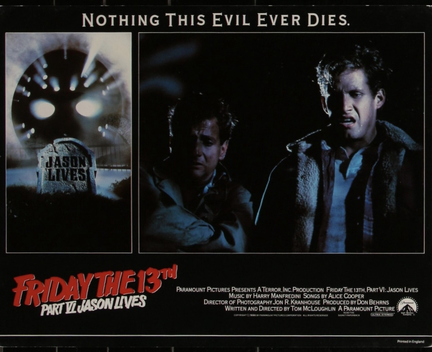 Jason Lives has plenty to offer from excellent, innovative kills, a great sense of suspense (I’m loving that the local sheriff is as much as an obstacle to Tommy as Jason is) and, the only time it’s happened in Friday the 13th history, a big superstar theme song. And it’s a great song sung by legend Alice Cooper. In fact, this was the first time I heard of Jason Lives, by seeing the 12’’ sleeve of an import copy of He’s Back (The Man Behind The Mask) in my local record store.