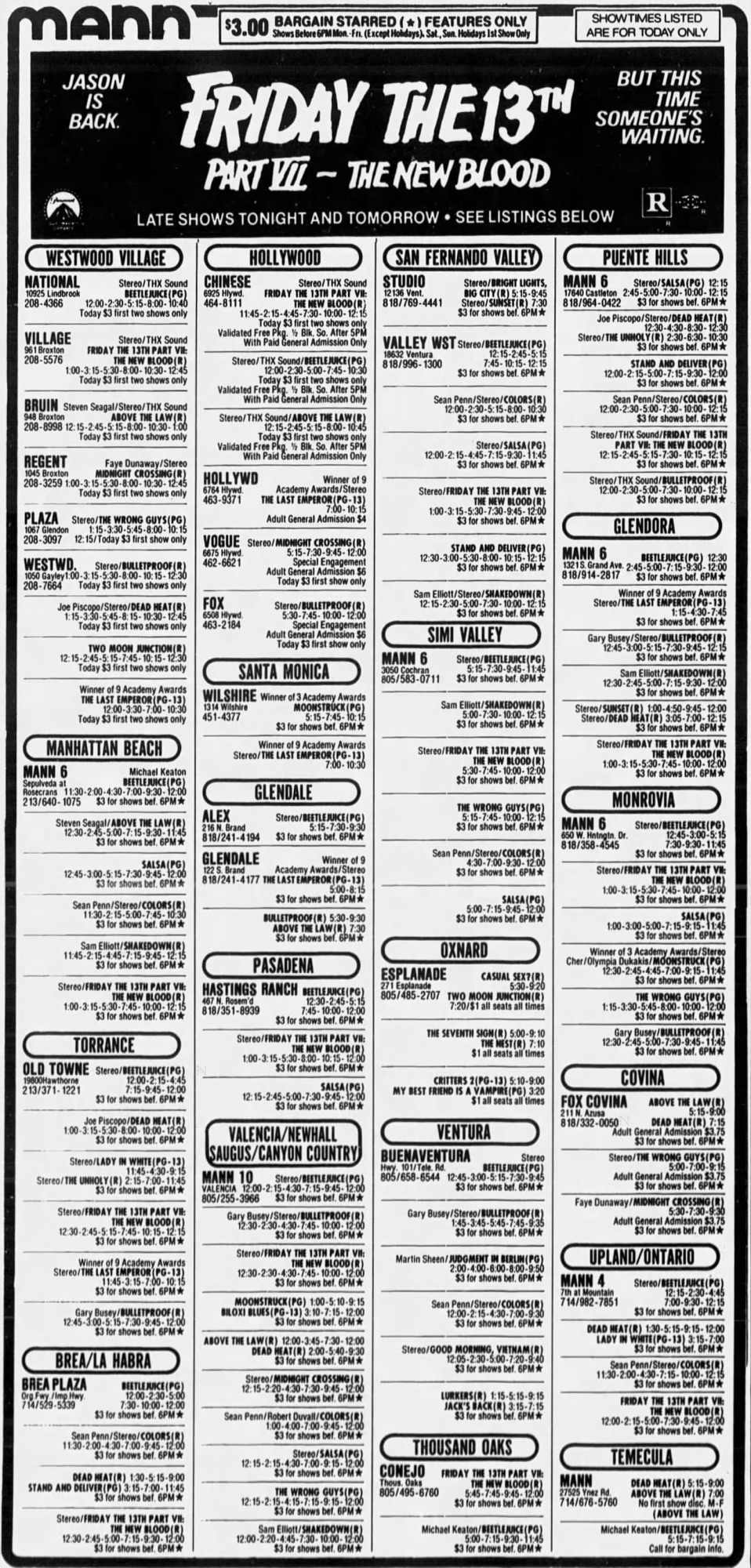 Which leads us to an interesting production fact. Some of the studio bigwigs wanted The New Blood to be more ‘respectable’ than previous entries with lauded directors named to hopefully direct. Fellini and Bertolucci were cited (I’m honestly not making this up!) As a change in proceedings, Universal executives thought it would be interesting to make a Friday entry that would make critics gush and film festival attendees throw roses at the screen. Thankfully, this didn’t happen but it’s an interesting idea. Quentin Tarantino, are you reading this?