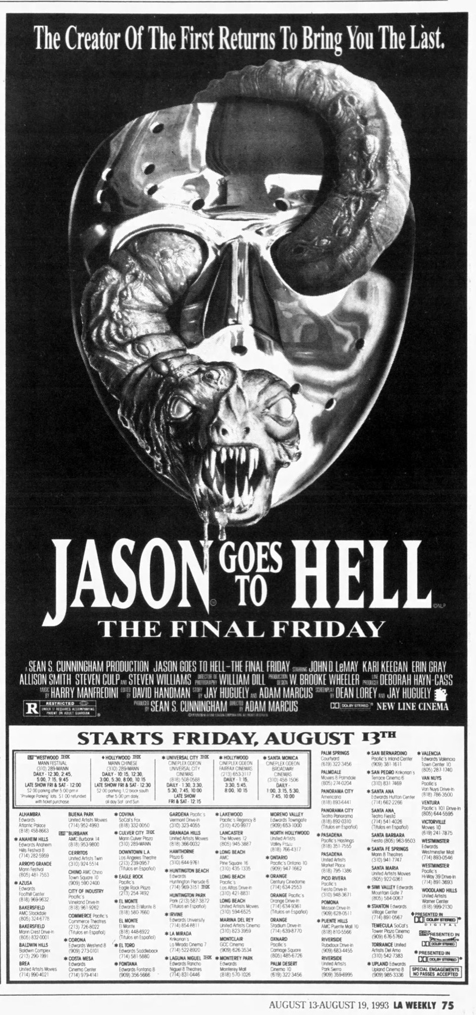 I like the local diner selling Jason burgers shaped like his trademark hockey mask but that’s it. The rest is dire. It doesn’t feel like a Friday movie and the makers of this atrocity obviously hadn’t seen Part 5. Fans want Jason, not a set of very boring characters doing his bidding for him. This film also adds to the series mythology by introducing Jason’s sister (she’s called Laurie Strode. Just kidding) who’s the only one who can kill Jason and blah, blah, blah…