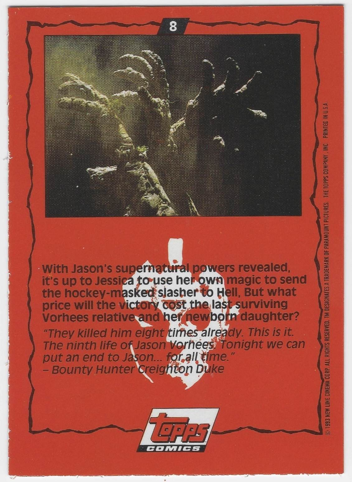 Jason’s head here looks like a huge blob of bubblegum. Is that really how they envisaged him? His head looks like it’s actually devouring his mask.