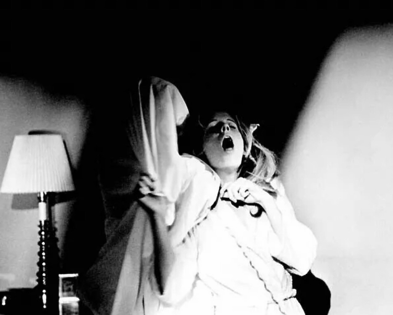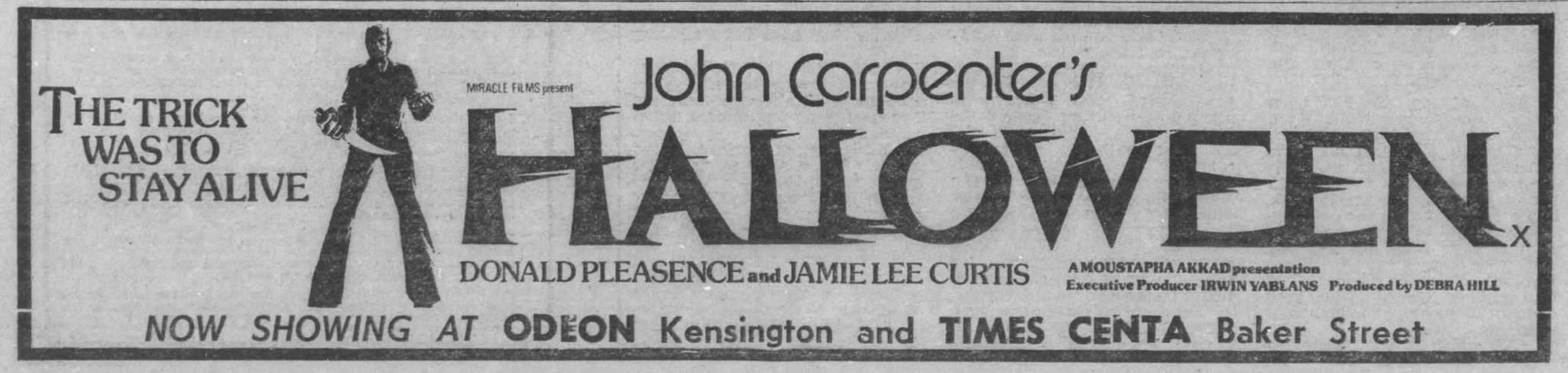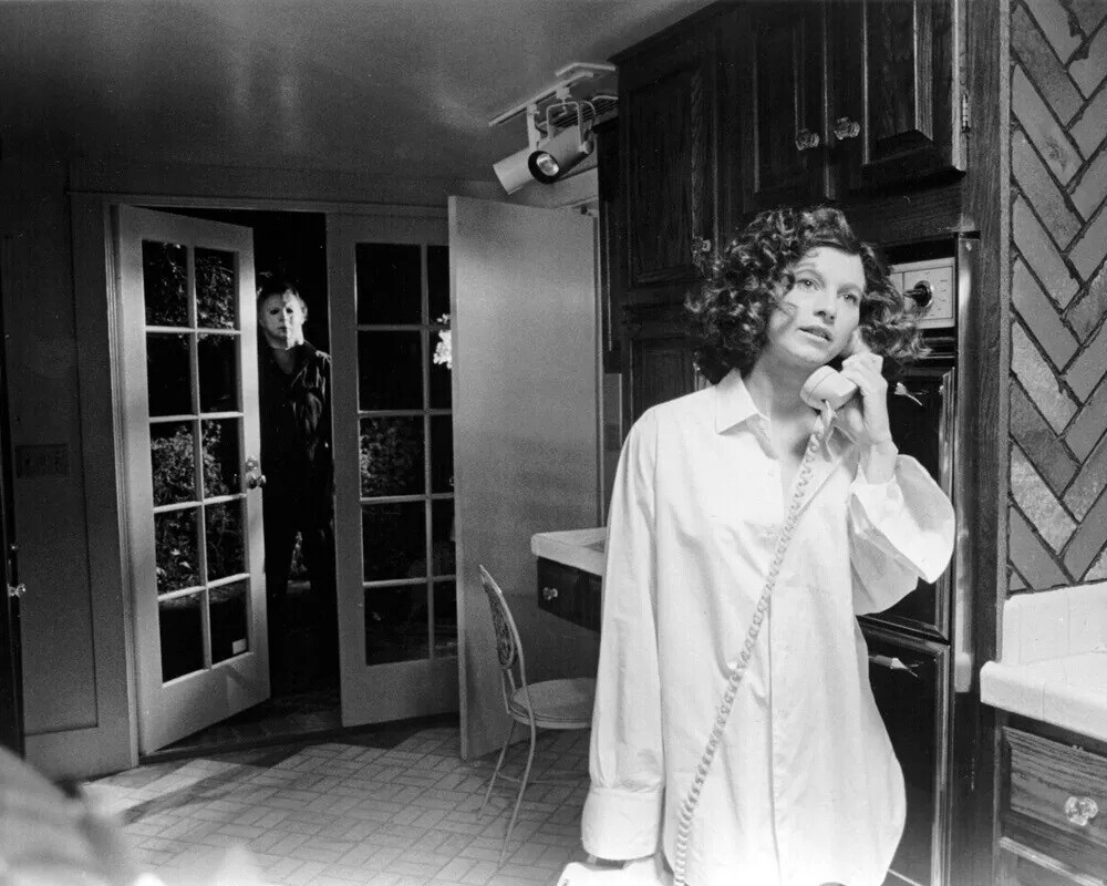Freud would have a field day with the case history of Myers and his motivations. He is dark instinct. That’s why in the later sequels, where his kills become more and more Hollywood, it doesn’t ring true to me. Within this first film, he is a killing machine, a human shark and is so much more terrifying because of it. Michael’s blank expressionless ‘face’ (a Captain Kirk mask altered by members of the production team) is the perfect outward display of someone who has human features but no emotion. Witness his reaction to the dead body of Bob. His reaction to his death is one of puzzlement. As is stated in Halloween, Michael Myers is The Bogeyman but made flesh.