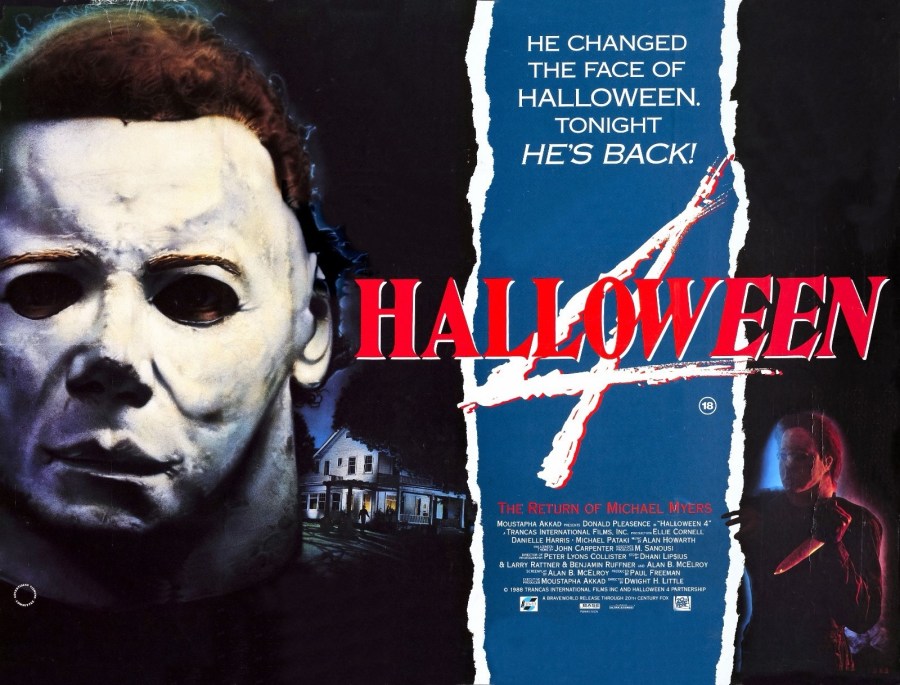 I remember I actually had the poster for Halloween 4, which I seem to recall came free with either Fangoria or Gorezone, which I used to buy religiously back in the day. This was way before the film was released here in the UK. The poster looked so cool and I was intrigued to see what the film would be like with Mr Myers returning to the fold. The imagery of the poster was very evocative of the original film and so I was moist with anticipation.