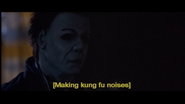 These ‘internet’ sequences made me think about how Rosenthal had directed these ‘looking at a screen’ sequences with much more suspense when he directed the earlier Halloween 2. Those shots of Myers slowly sliding up the corridors of Haddonfield Memorial Hospital through the CCTV monitors were scary as hell. Contrast that with seeing Michael on the internet live feed within this film- just some loser in a Myers mask that doesn’t look authentic (did Micheal rob Walmart prior to H2O?!) and is about as unsettling as some bored teen dressed up as him who works on the ghost ride at a local fun fair.