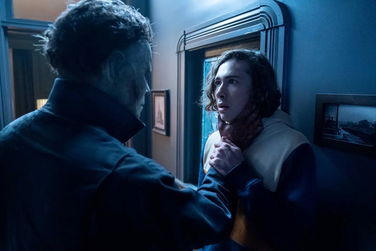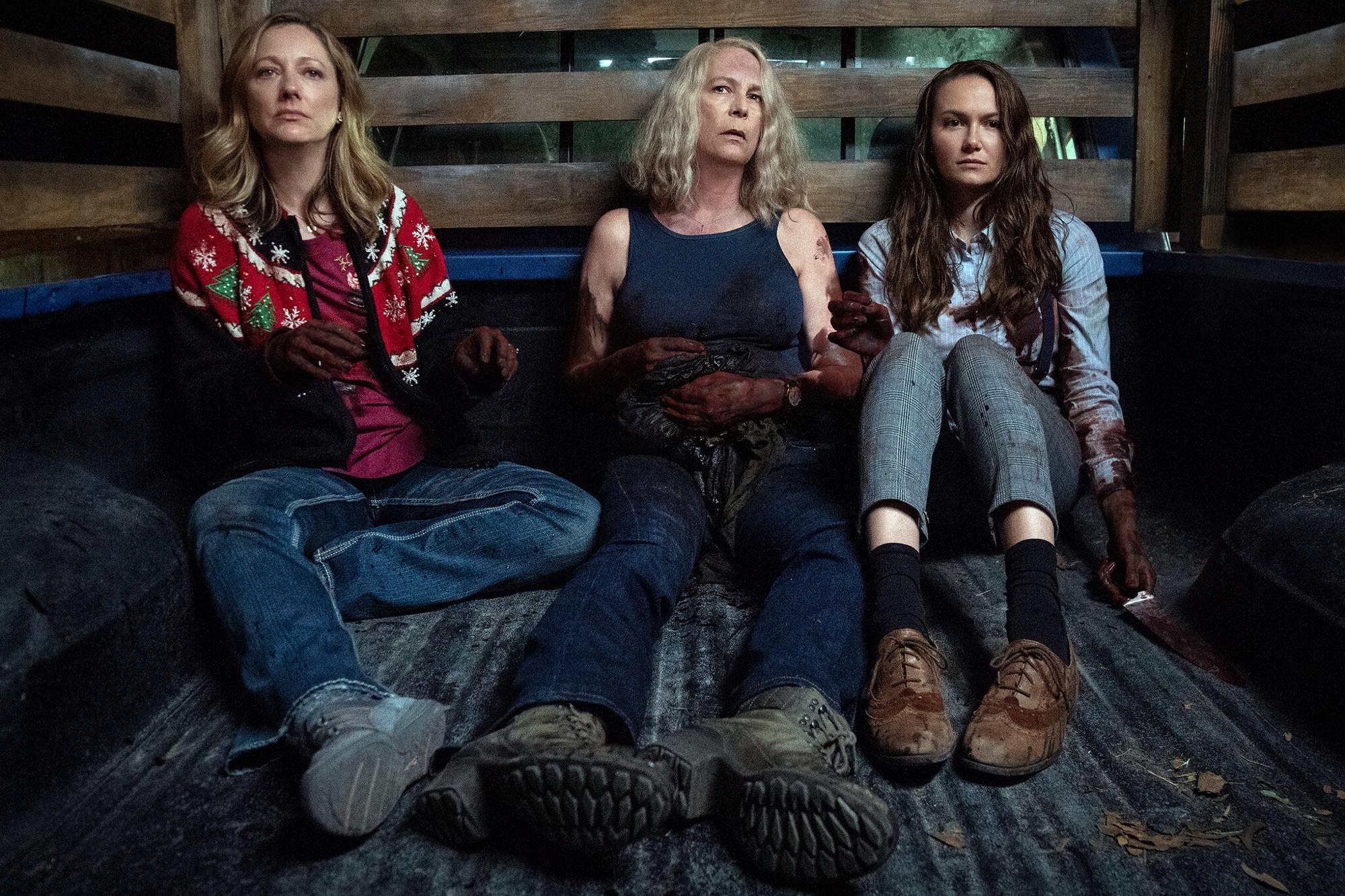 The start of Halloween Kills seemed to confirm my notions with the first character we see being the stunning and brave Bonnie (actually a man in a dress) from the fancy dress party from the previous movie still all frocked up and arguing with his Clyde on the phone.