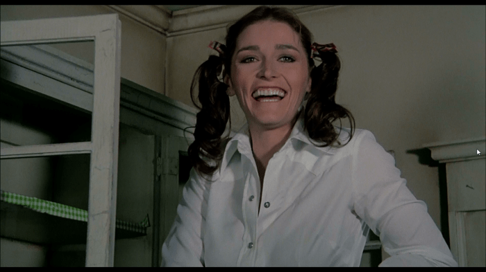 Also, Margot Kidder seems to have some kind of naughty schoolgirl, proto-Britney Spears vibe going on in this film. She’s all pigtails and short skirts with thigh-length socks. A bit pervy. Keep your fantasies in the bedroom, hun. Her husband is played by James Brolin who is here in uber-bear mode, all beard and flannel shirts. Look out for the scene of him in his tighty whiteys. Also, look at how he becomes more unhinged as the film progresses and how his physical self dramatically changes because of this.