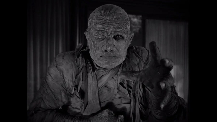 The Mummy’s Ghost continues Universal’s Kharis series as the bandaged high priest, controlled by a modern cult, returns to claim his ancient love, Ananka, whose spirit now inhabits a young woman.